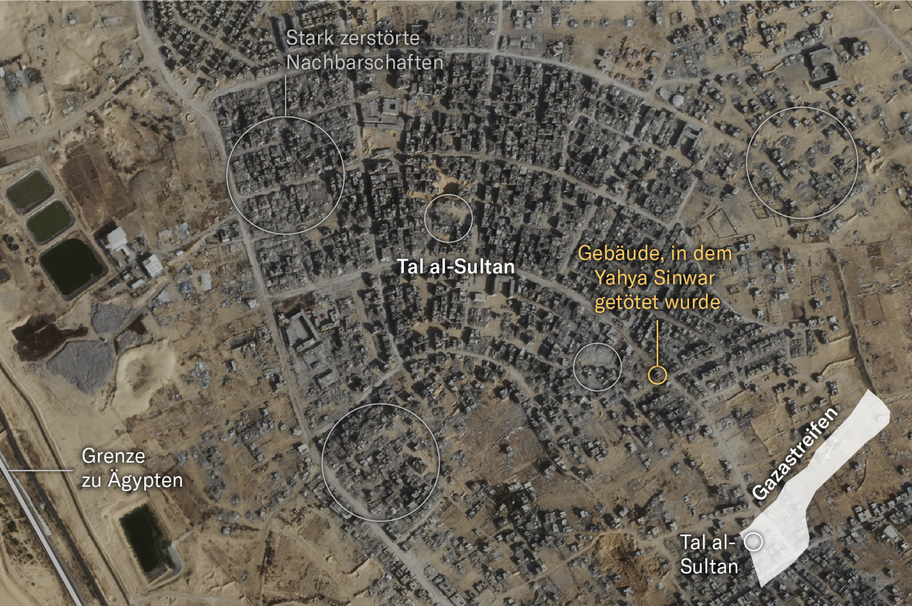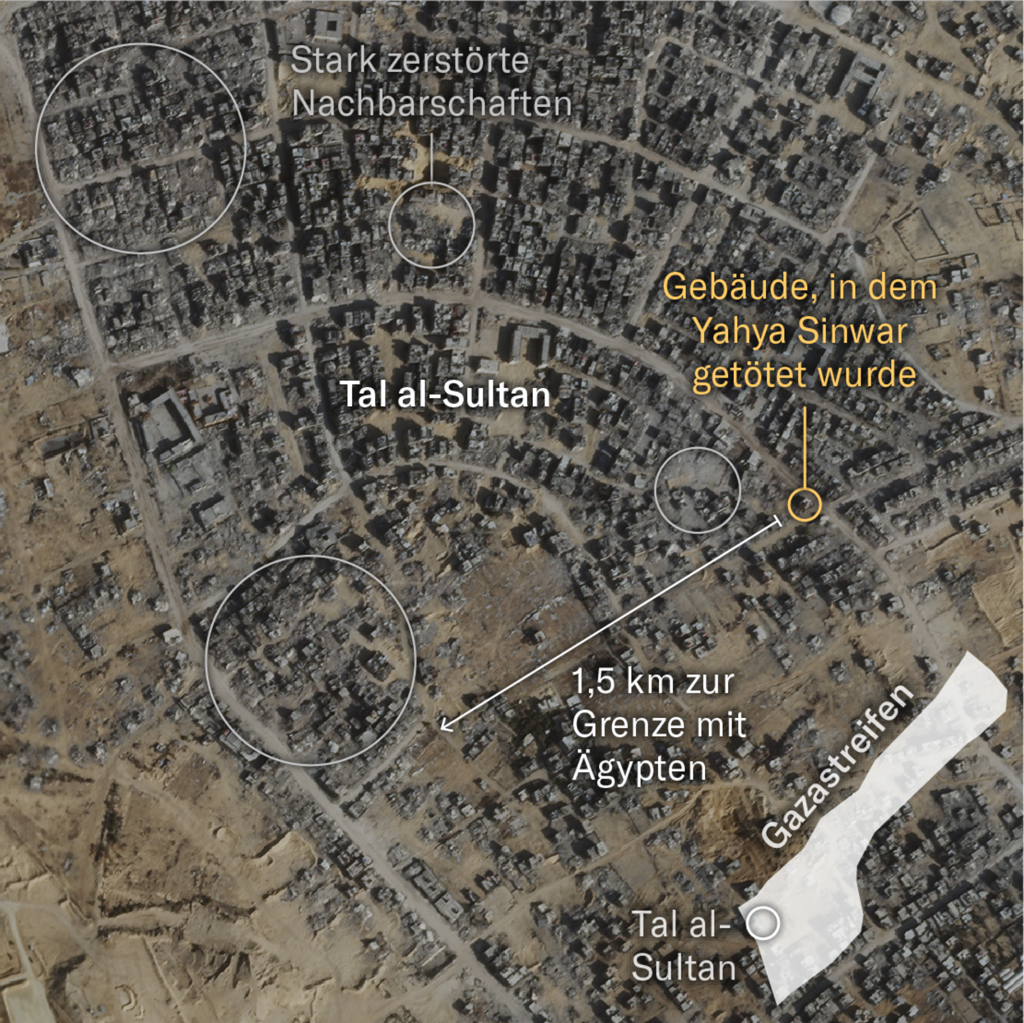 Satellite map showing the house in which Sinwar was killed by Israel Defense Forces