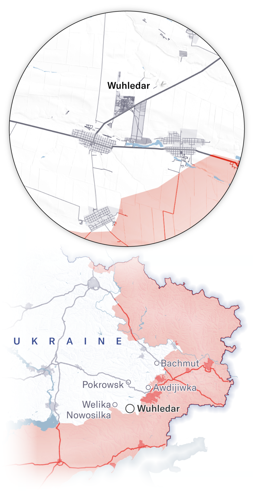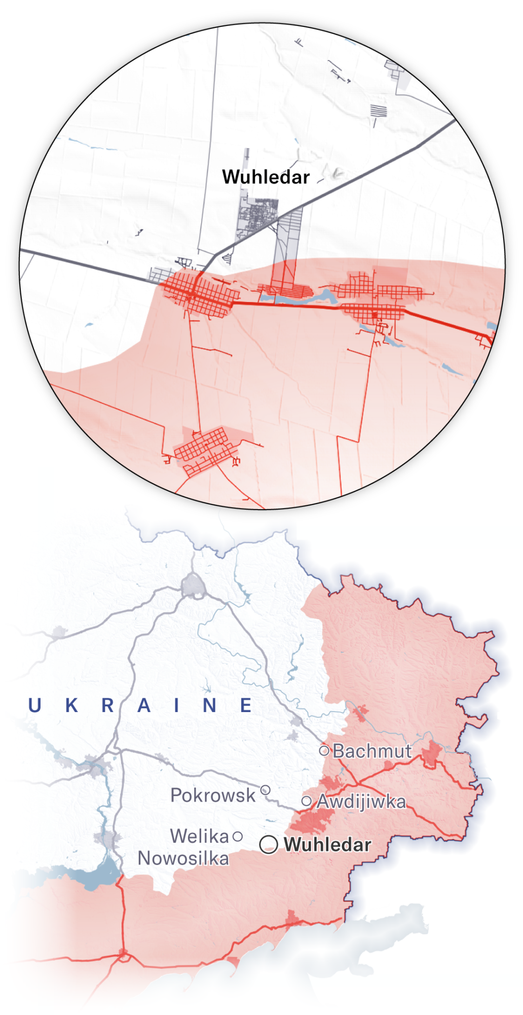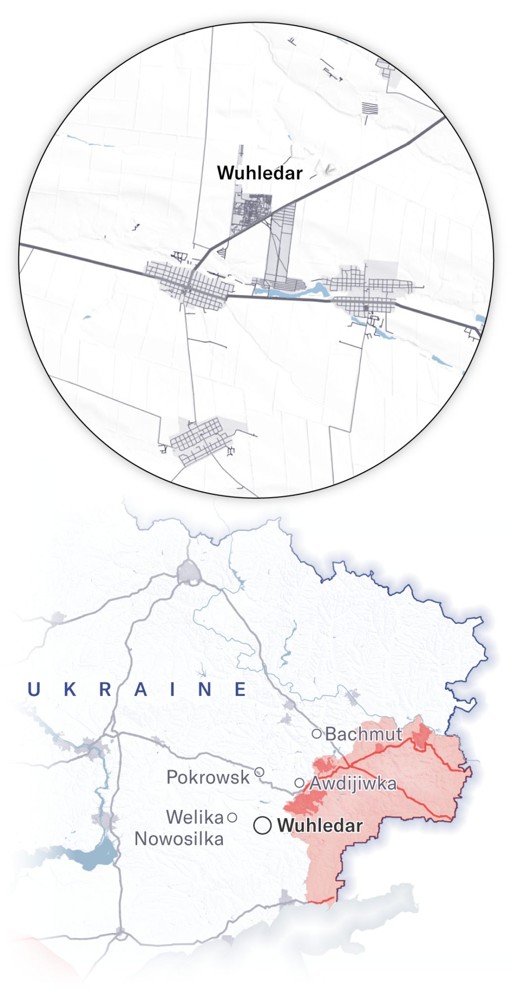 Maps showing how Russian forces advanced on Vuhledar, February 2022 through September 2024