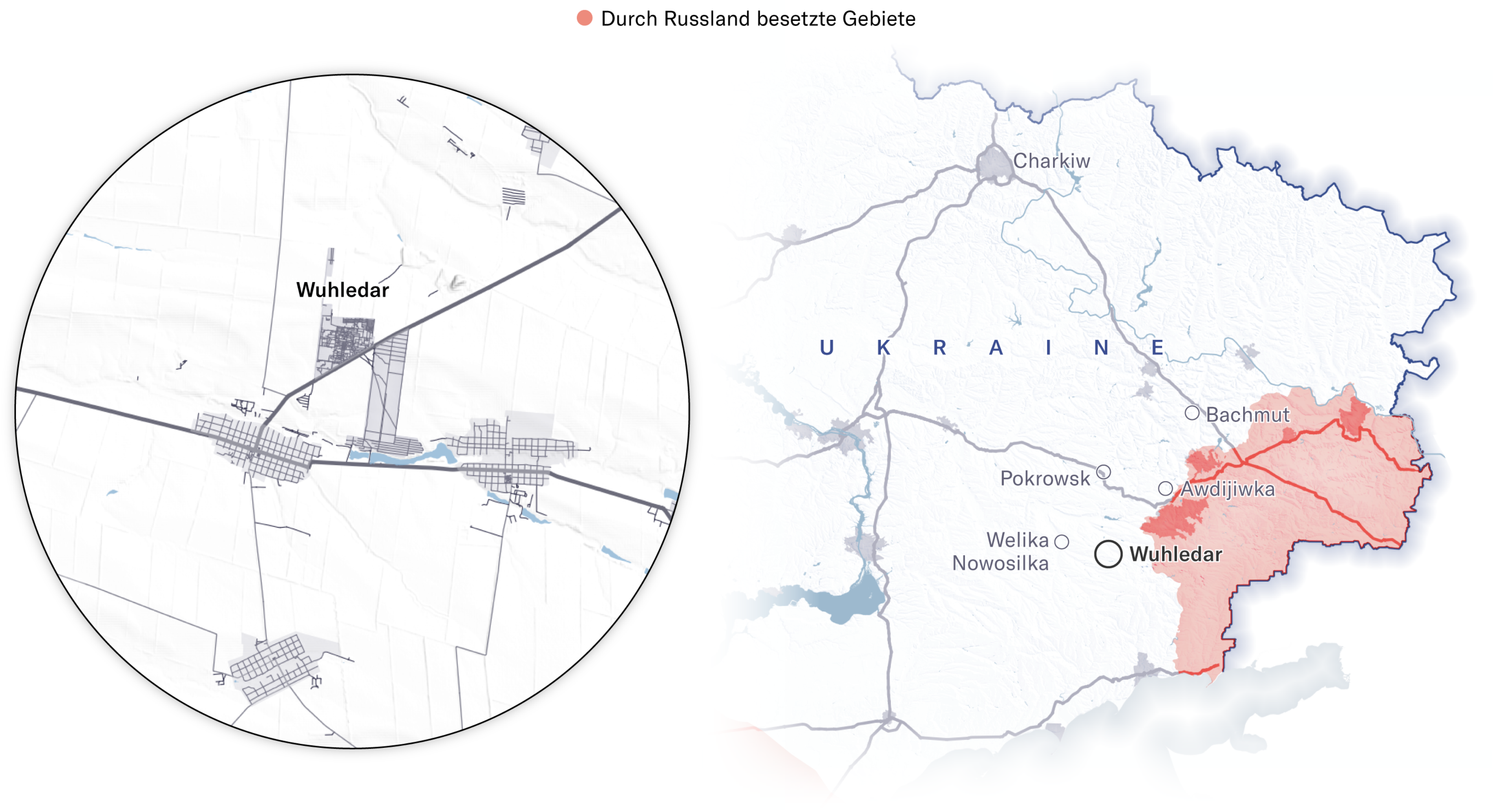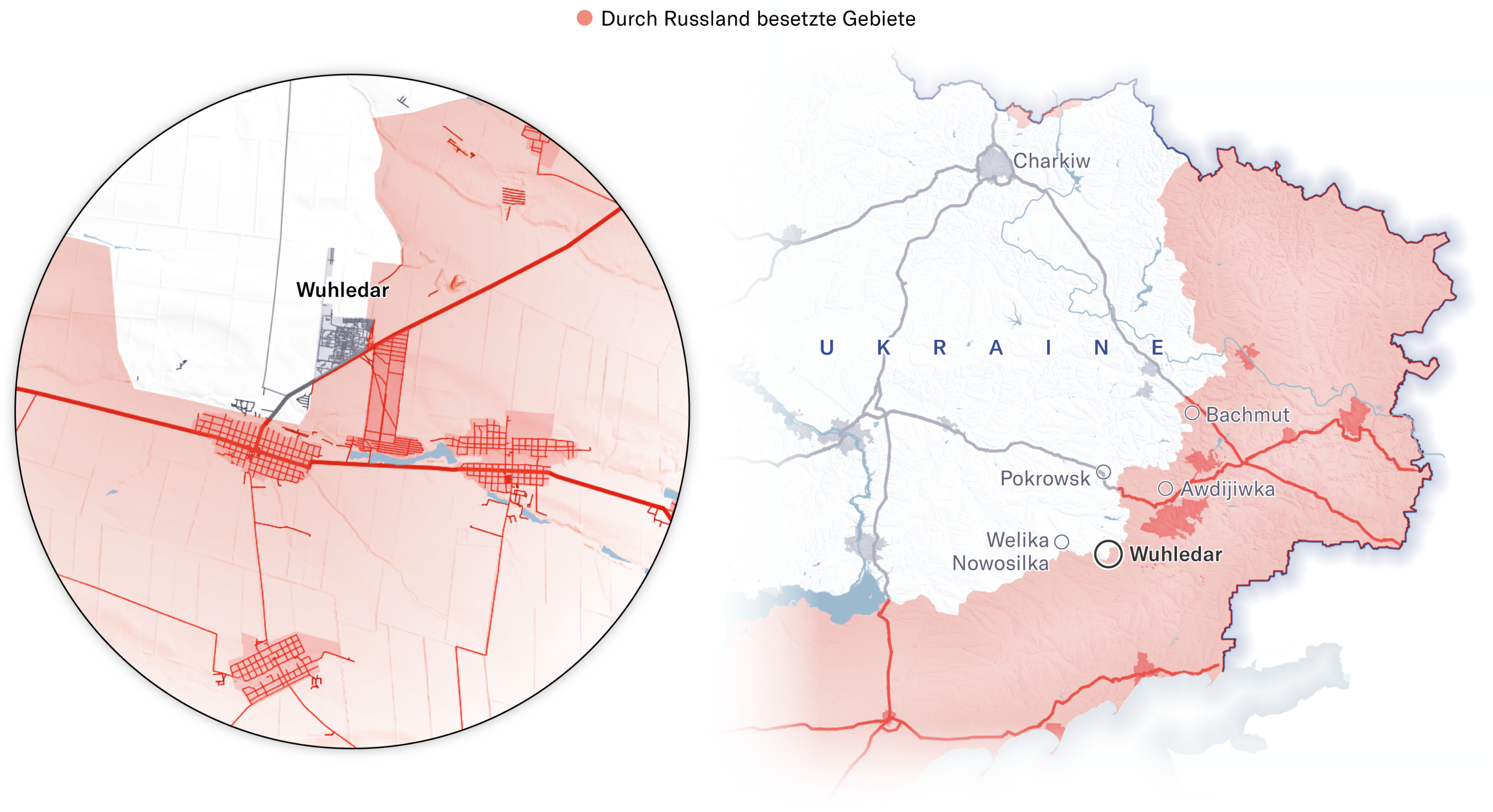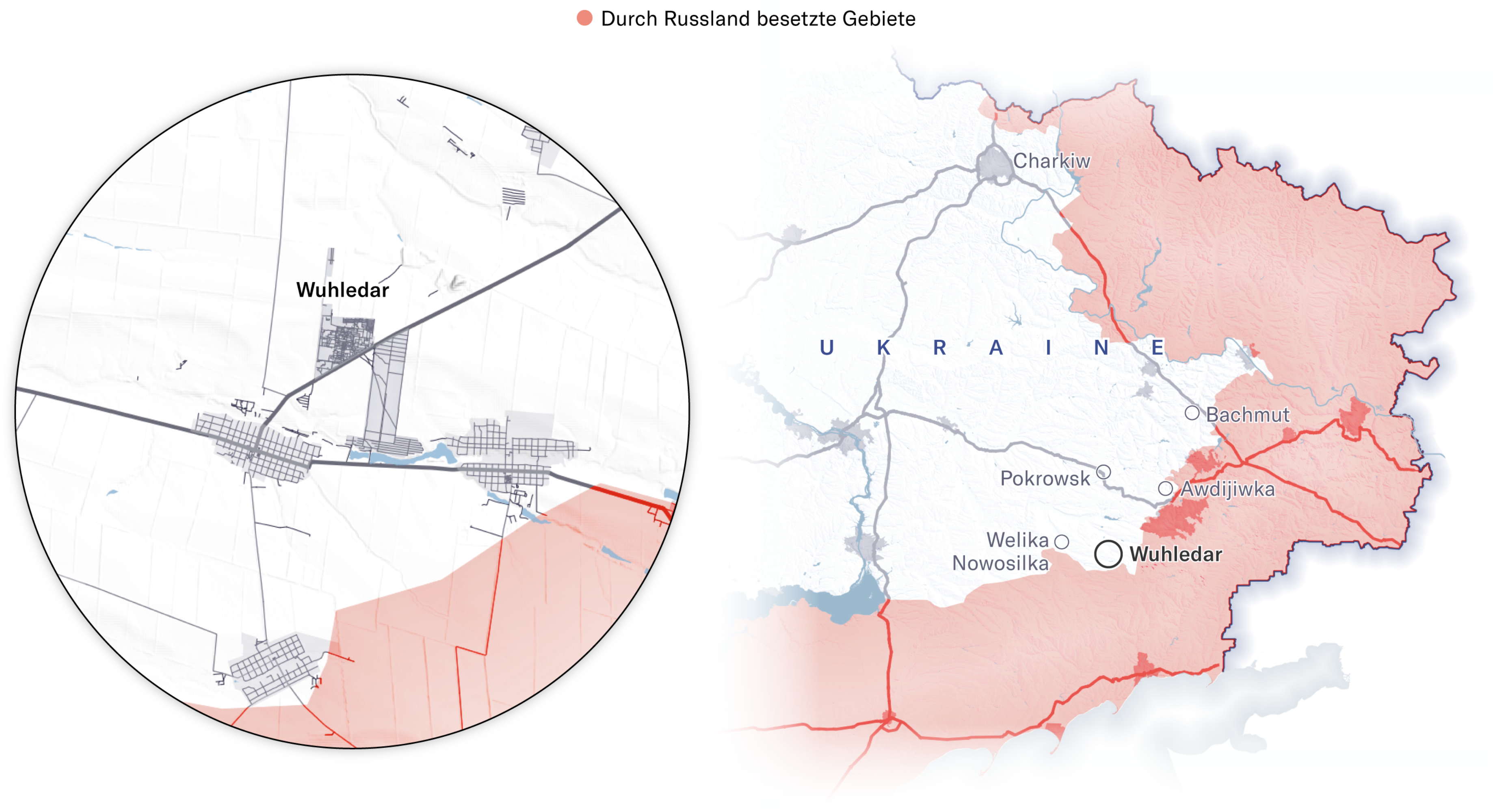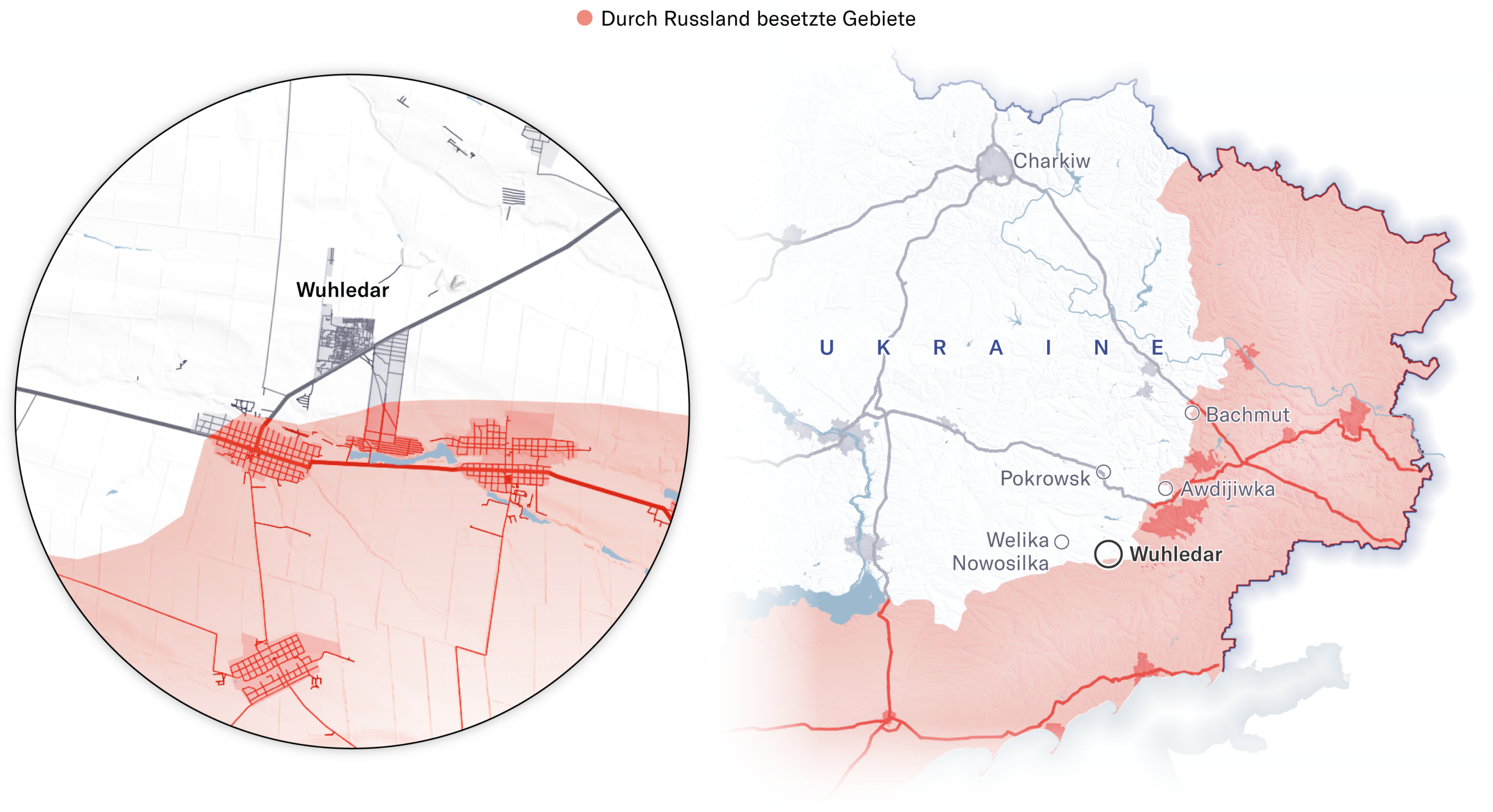Maps showing how Russian forces advanced on Vuhledar, February 2022 through September 2024